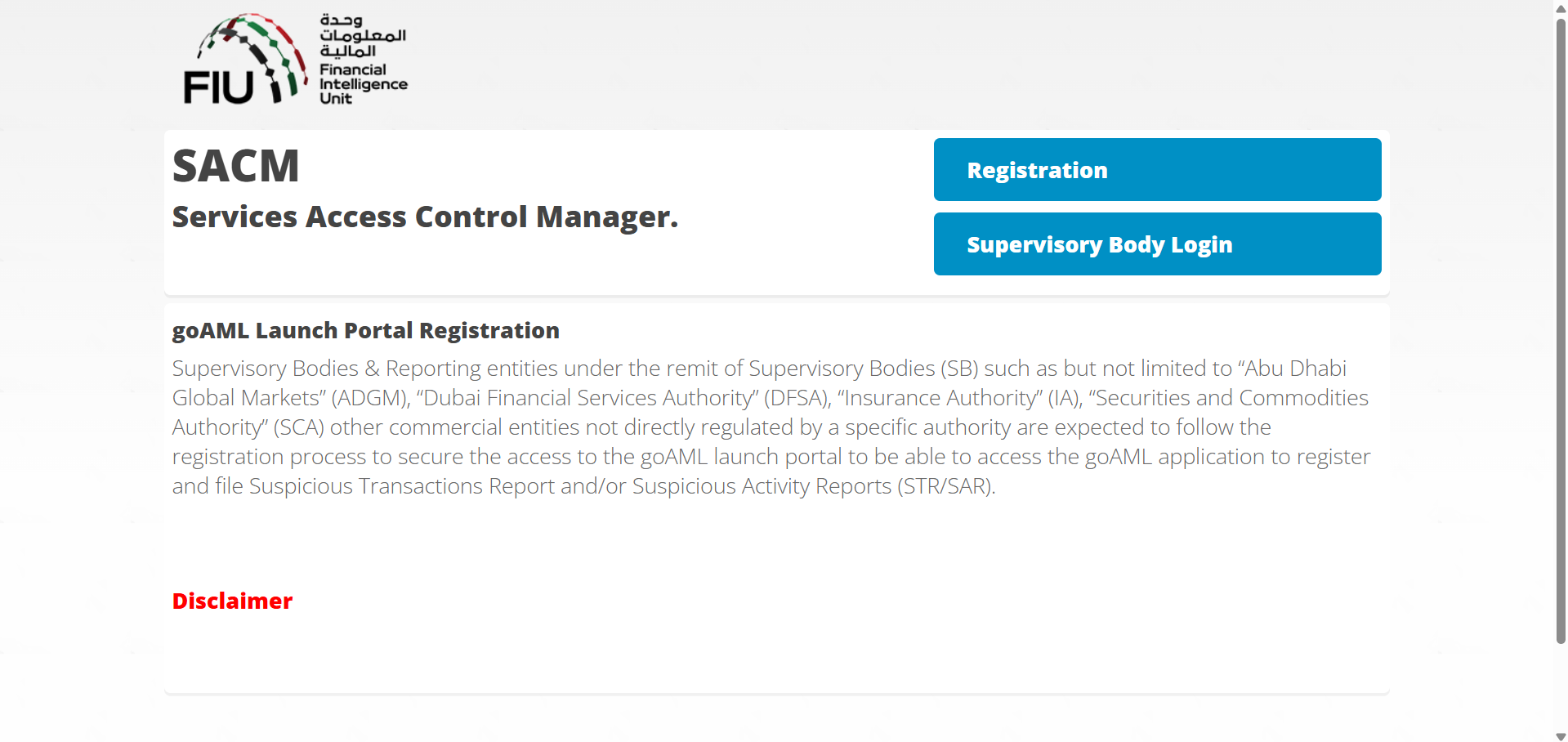 The goAML registration process is twofold. First, you must complete your SACM registration to receive the credentials for accessing the goAML portal. Then, you can complete your goAML registration on the UAE’s Financial Intelligence Unit (FIU) website.